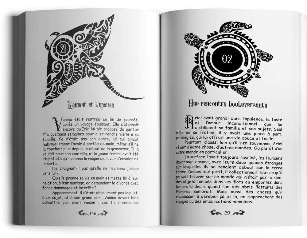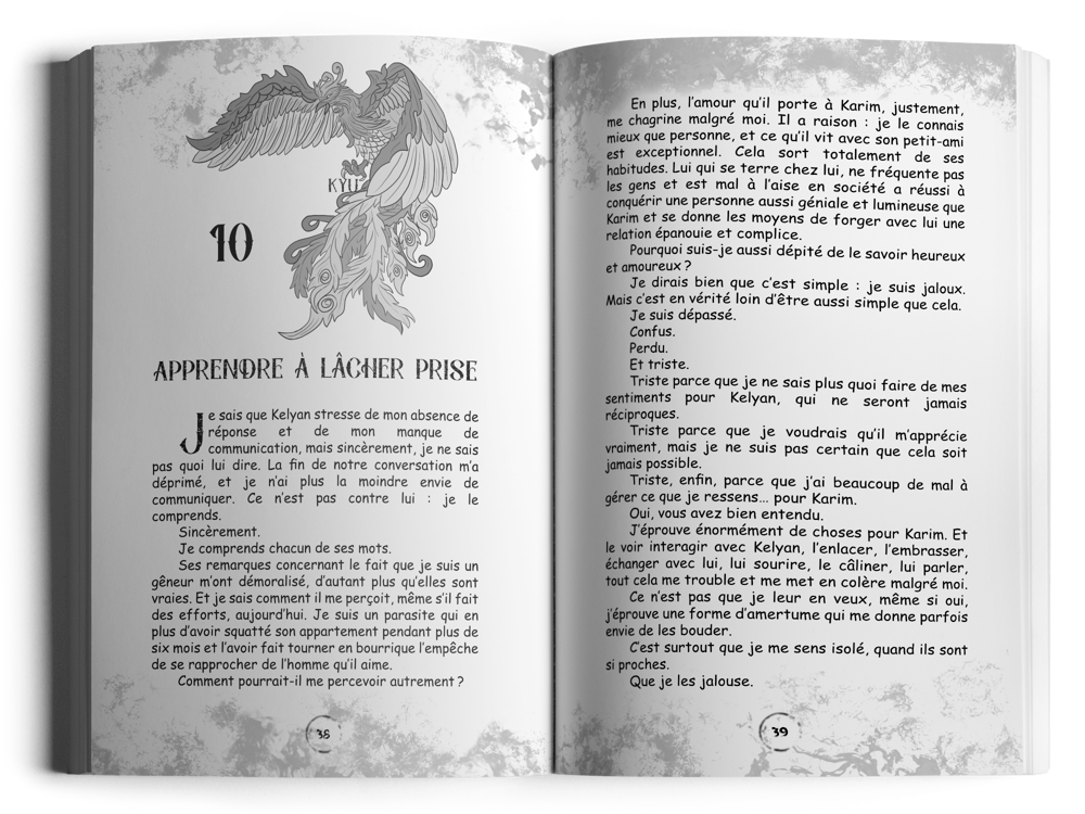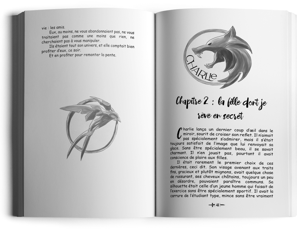 En plus des Chara Design, Aurélie vous propose d’illustrer vos débuts et/ou fins de chapitres, afin de vous offrir un dessin unique plutôt que des images libres de droits.